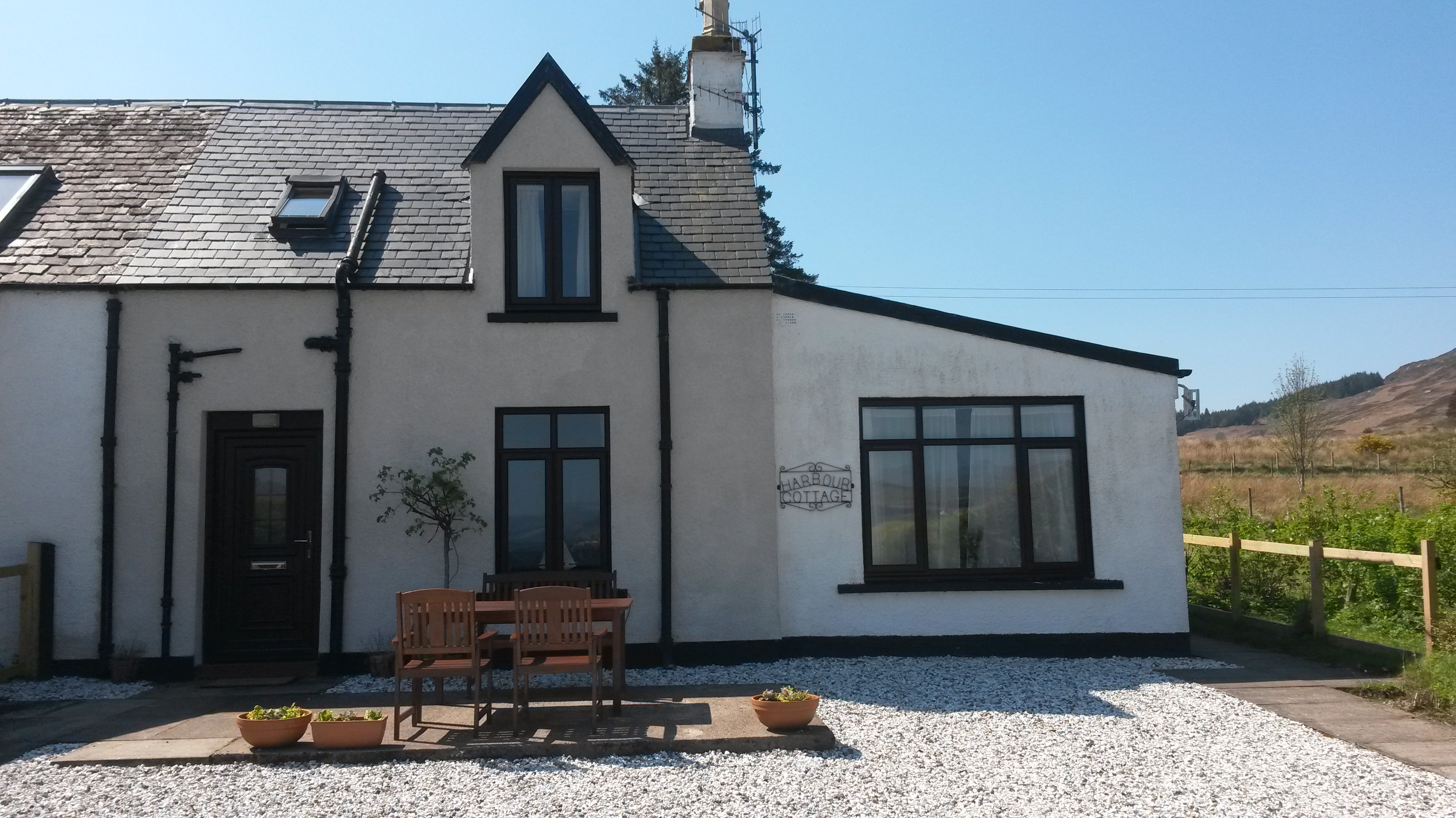 The area around the cottage is enclosed with seating areas at the front to enjoy the view down the loch and at the rear overlooking the garden and hills.