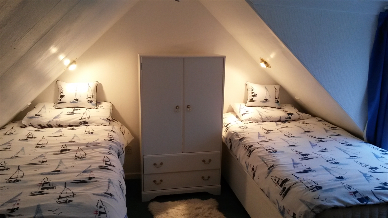 The cottage can cater for 2 guests downstairs in a king size loch-facing en-suite bedroom or for up to 4 more guests upstairs in a twin (side view) and loch facing double room with wc/bathroom.